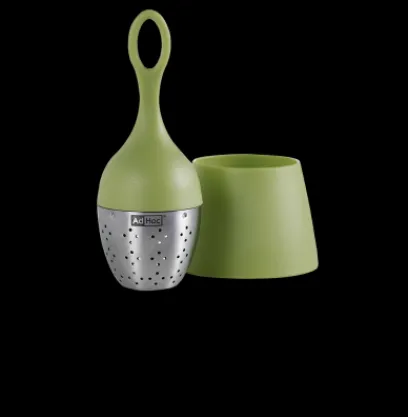 La boule à thé flottante est vendue avec un support de rangement qui sert également de ramasse-gouttes après utilisation.