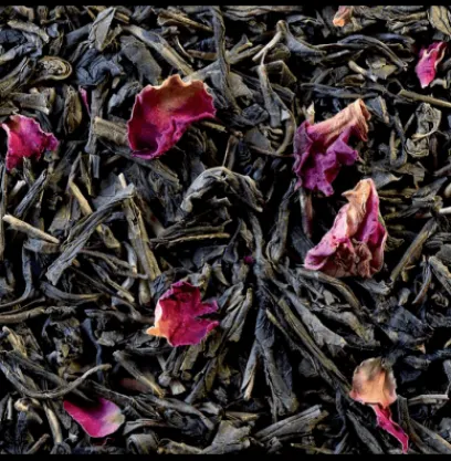 Bonne fête Maman (Doux et chaleureux, ce mélange de thés noirs aux saveurs d’amande, de vanille, de cerise et de miel vous rappellera la tendresse de nos mamans. Peut contenir des traces d’huile d’arachide.) & Thé vert à la rose (Thés verts de Chine aromatisés à la rose et parsemés de pétales de rose).