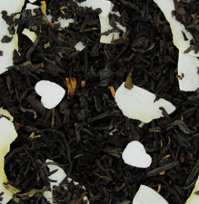 Jour d’Amour : Mélange de thés noirs aromatisés à la noix de coco naturelle. Intense et gourmand, parsemé de cœurs blancs & Mon Cherry : Union harmonieuse entre un mélange de thés noirs sélectionnés, la force du chocolat noir et la douceur sucrée de la cerise, agrémenté de fleurs. Peut contenir des traces de gluten, de fruits à coque, de lait, de sésame, d’oeuf et de soja.