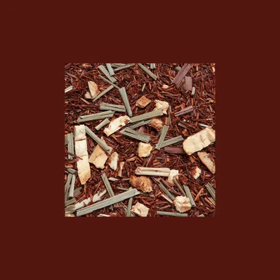 Rooibos aromatisé citron avec branches de citronnelle et d’écorces de citron.