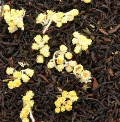 Mélange de thés noirs de Chine aromatisé chocolat et orange, agrémenté de fleurs.