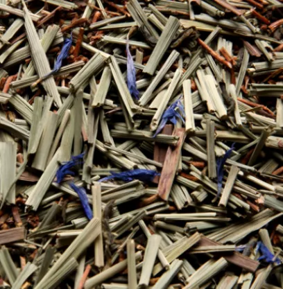 Thé vert du Yunnan, citronnelle, queues de cerise et écorces de citron. Un cocktail qui facilite l’élimination des « superflus ».