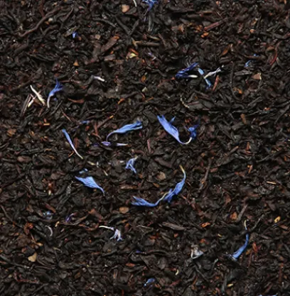 Thés noirs de Chine aromatisés à la bergamote et agrémentés d’une note gourmande de crème brûlée parsemés de morceaux de caramel et de pétales de bleuet.