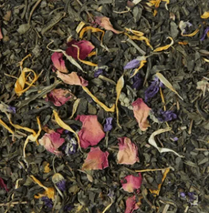 Mélange de thés verts associé à la douceur vitaminée du fruit du dragon ou pitaya, et richement parsemé de pétales de rose & de fleurs de mauve.