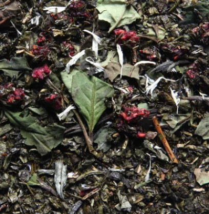 Mélange de thés verts et blancs aux arômes de fruits rouges et aux notes d’amandes et de miel, évoquant ainsi la gourmandise et les saveurs d’un gâteau d’anniversaire.